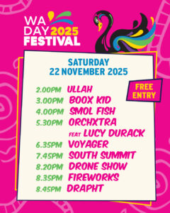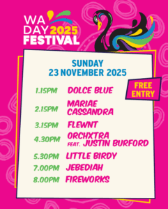 The WA Day Festival is a free, family-friendly celebration of everything that makes Western Australia great — our people, places, and shared achievements.